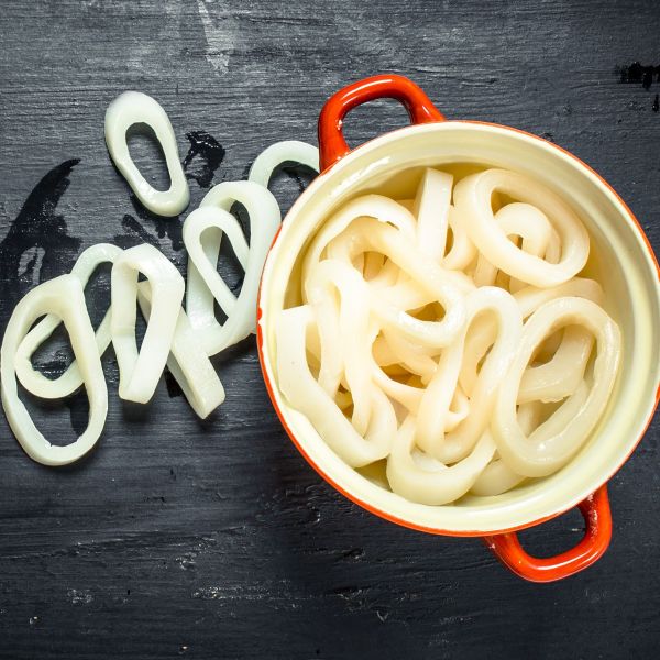 Κατεψυγμένο θράψαλο καθαρισμένο και κομμένο σε ροδέλες, έτοιμο για μαγείρεμα.
