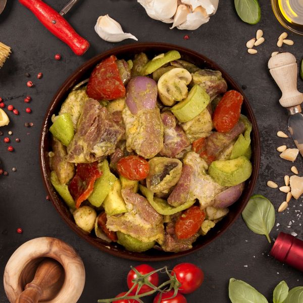 Επιλεγμένα κομμάτια χοιρινού κρέατος από λαιμό τυλιγμένα στην λαδόκολα με πολύχρωμες πιπεριές, φέτα, κρεμμύδι, λευκό κρασί και μπαχαρικά.