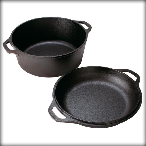 LODGE Combo Μαντεμένια Γάστρα (4,73 lt) Με Μαντεμένιο Καπάκι-Τηγάνι 27,18 εκ. Με 2 Λαβές - L8DD3