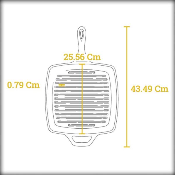Αποκτήστε ακόμη περισσότερη επιφάνεια μαγειρέματος με το τετράγωνο μαντεμένιο τηγάνι grill (σχαροτήγανο) 26.67 εκατοστών της Lodge. Η επιφάνεια με ραβδώσεις διοχετεύει το λίπος μακρυά από το φαγητό, ψήνοντας το ιδανικά και χαρίζοντάς του τα χαρακτηριστικά σημάδια σχάρας. Ψήστε, αφήστε το κρέας να «ξεκουραστεί» και σερβίρετε στο ίδιο σκεύος, διατηρώντας το φαγητό ζεστό για περισσότερη ώρα και με όλες τις γεύσεις του, εντυπωσιάζοντας τους καλεσμένους σας. Διαθέτει μια βοηθητική λαβή και μια ακόμα μακριά λαβή για μεγαλύτερη άνεση και εξαιρετικό έλεγχο κατά τη μεταφορά. Φτιαγμένο από μαντέμι με 100% φυσική επίστρωση (seasoned) και έτοιμο για χρήση, θα χαρίσει στο φαγητό σας όλη τη θερμότητα που χρειάζεται για να μαγειρευτεί ομοιόμορφα και να διατηρήσει όλη τη διατροφική του αξία.